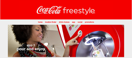 可口可樂在Facebook推出了一款在線應(yīng)用Coca-ColaFreestyle。它能讓你隨意選擇可口可樂旗下的125種飲料,包括知名的可樂、雪碧、芬達(dá)和Powerade等。每選好一種口味,只需點(diǎn)擊屏幕上的按鈕,通過控制按住鼠標(biāo)時間的長短來決定飲料的多少。當(dāng)你的杯子裝滿以后,你就可以為這款獨(dú)一無二的飲料命名。你也可以在iPhone和Android商店里找到對應(yīng)的應(yīng)用游戲。