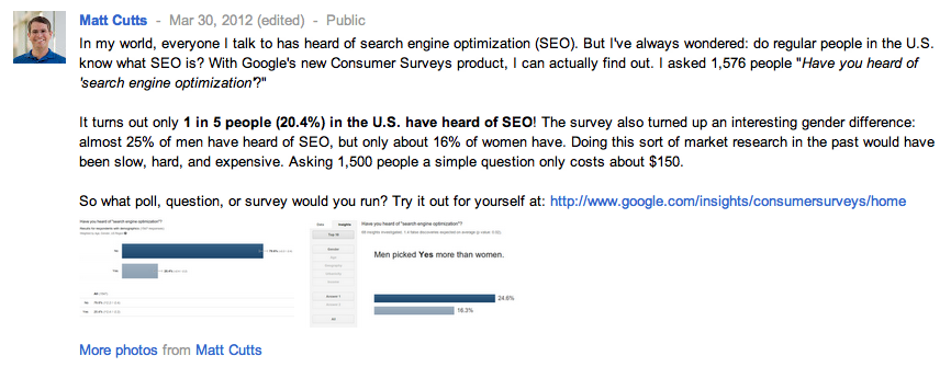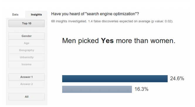 2016/10/18| 閱讀次數(shù):654 最近Google頻頻出新產(chǎn)品,而最近剛剛推出的Google Consumer Surveys給我的第一感覺就是這玩意做外貿(mào)的朋友用的上,我不知道我的讀者里有多少人給自己公司的產(chǎn)品做過Surveys的?我估計不會太多,但這玩意太有必要了。且不談海外客戶,光是我們做國內(nèi)的客戶,都無法了解自己同胞骨子里到底是怎么想的,更別說海外客戶了,完全是兩種邏輯思維。所以一切朝數(shù)據(jù)看齊,數(shù)據(jù)不會欺騙我們。