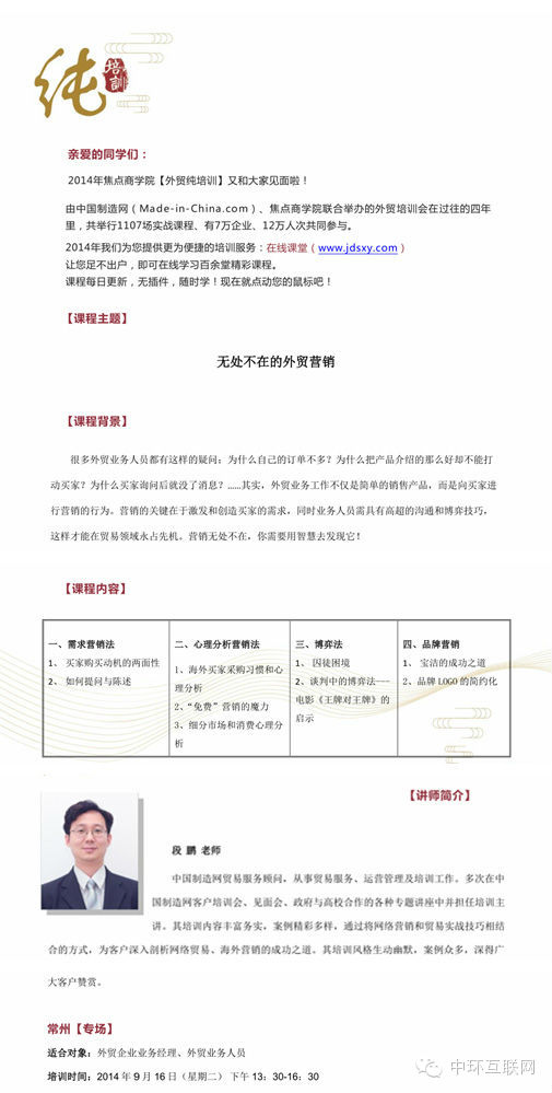 適合對(duì)象:外貿(mào)企業(yè)業(yè)務(wù)經(jīng)理、外貿(mào)業(yè)務(wù)人員