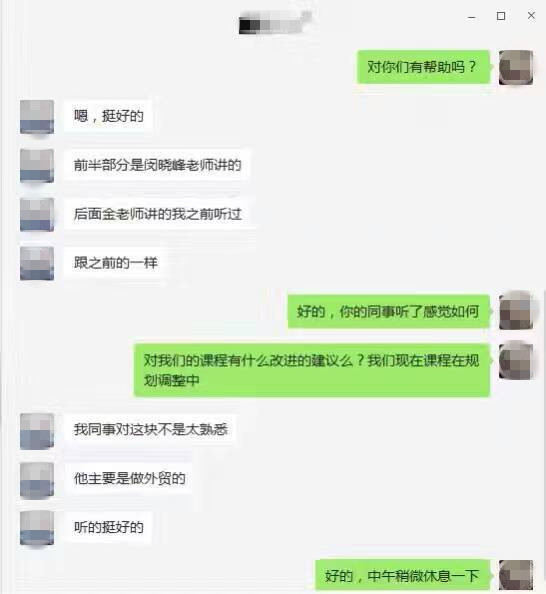 ▲課程中,我們的服務(wù)團(tuán)隊(duì)也在持續(xù)跟進(jìn)學(xué)員們的學(xué)習(xí)感受,第一時(shí)間獲取課程反饋