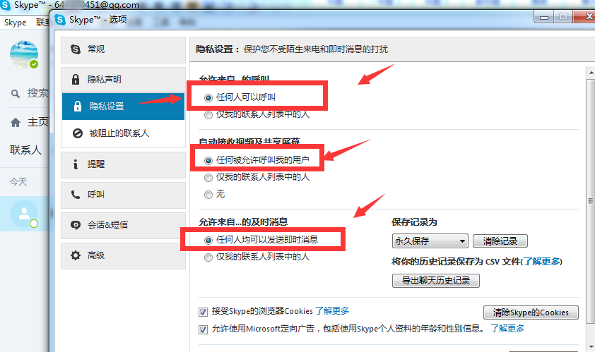 二.不加好友,直接“語音、視頻聊天”或“留言”,必須設(shè)置隱私項目